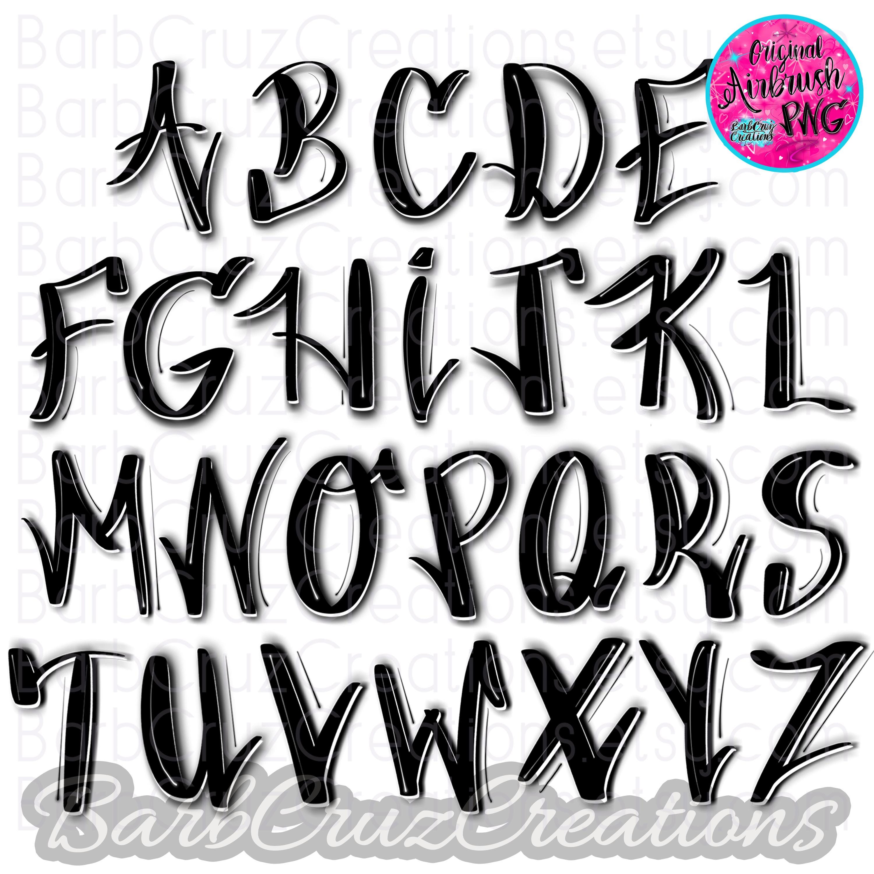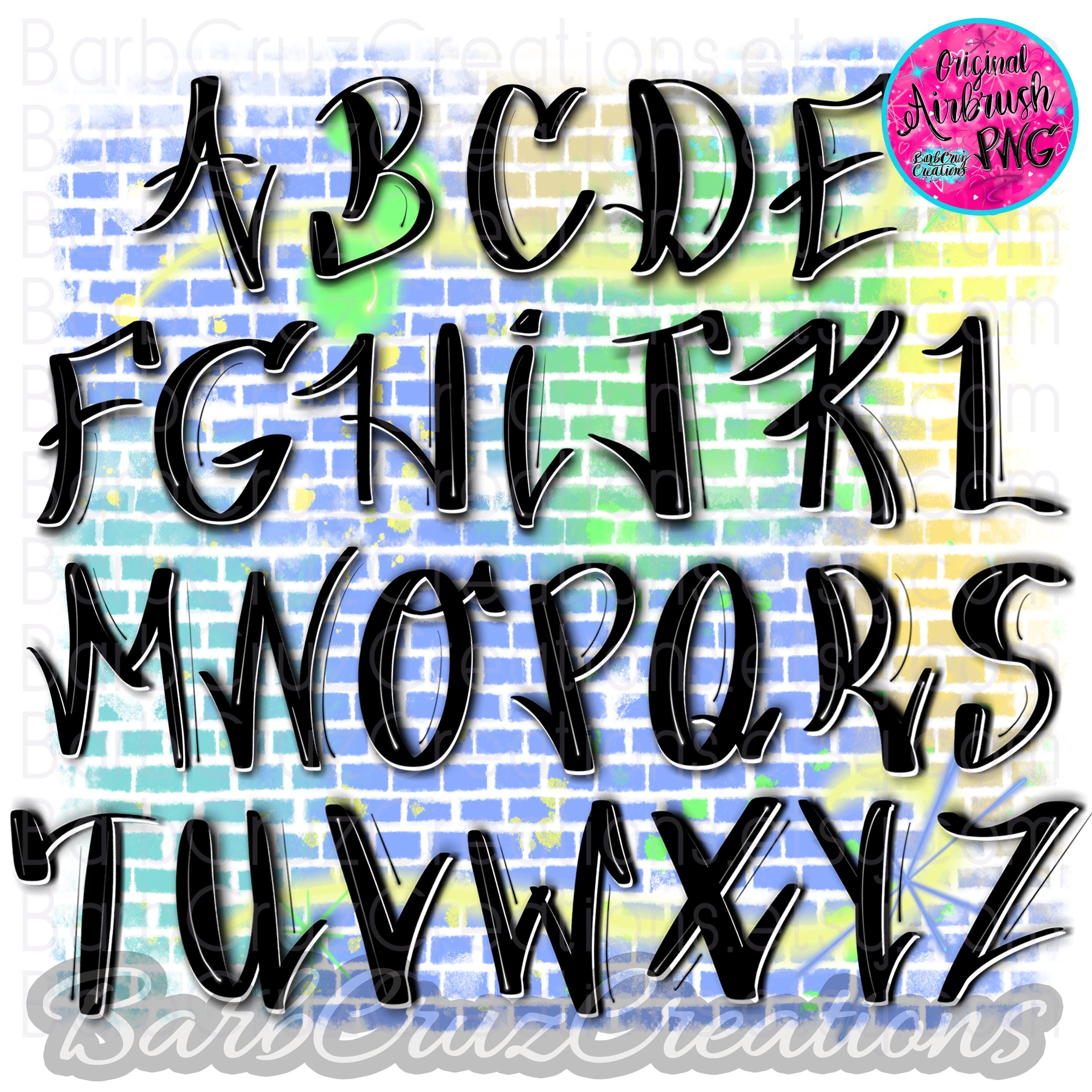 Airbrush Graffiti Font, Letters, PNG Images (Digital Download) Airbrush Font, Graffiti Letters Cursive Upper, Lower, Alphabet, Sublimation