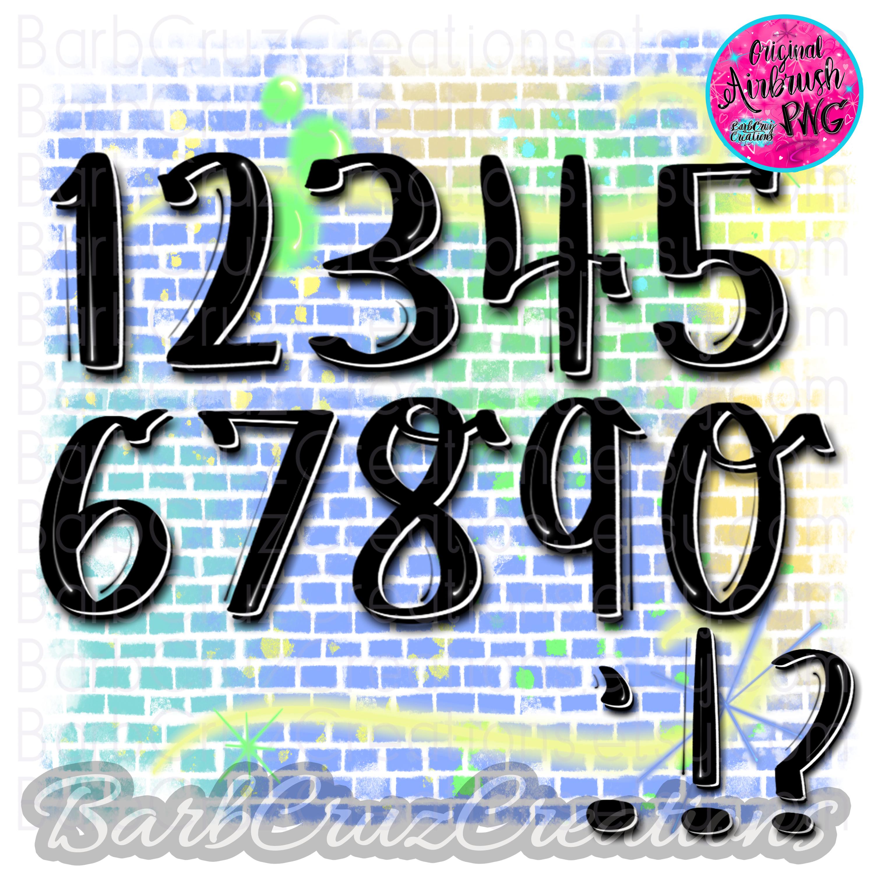 Airbrush Alphabet Letter Individual Images on a zip file as png's - both Numbers, Upper & Lower Case images included