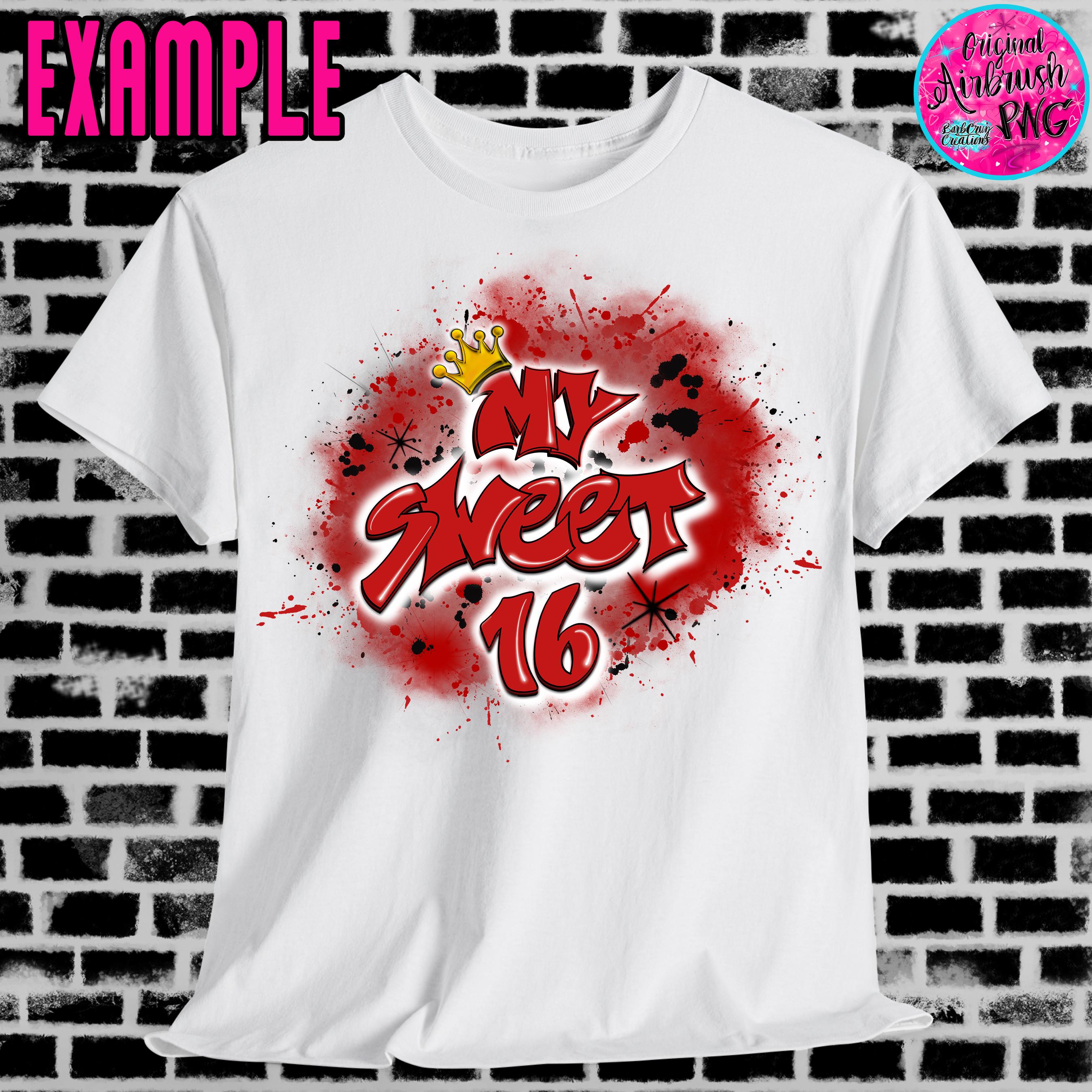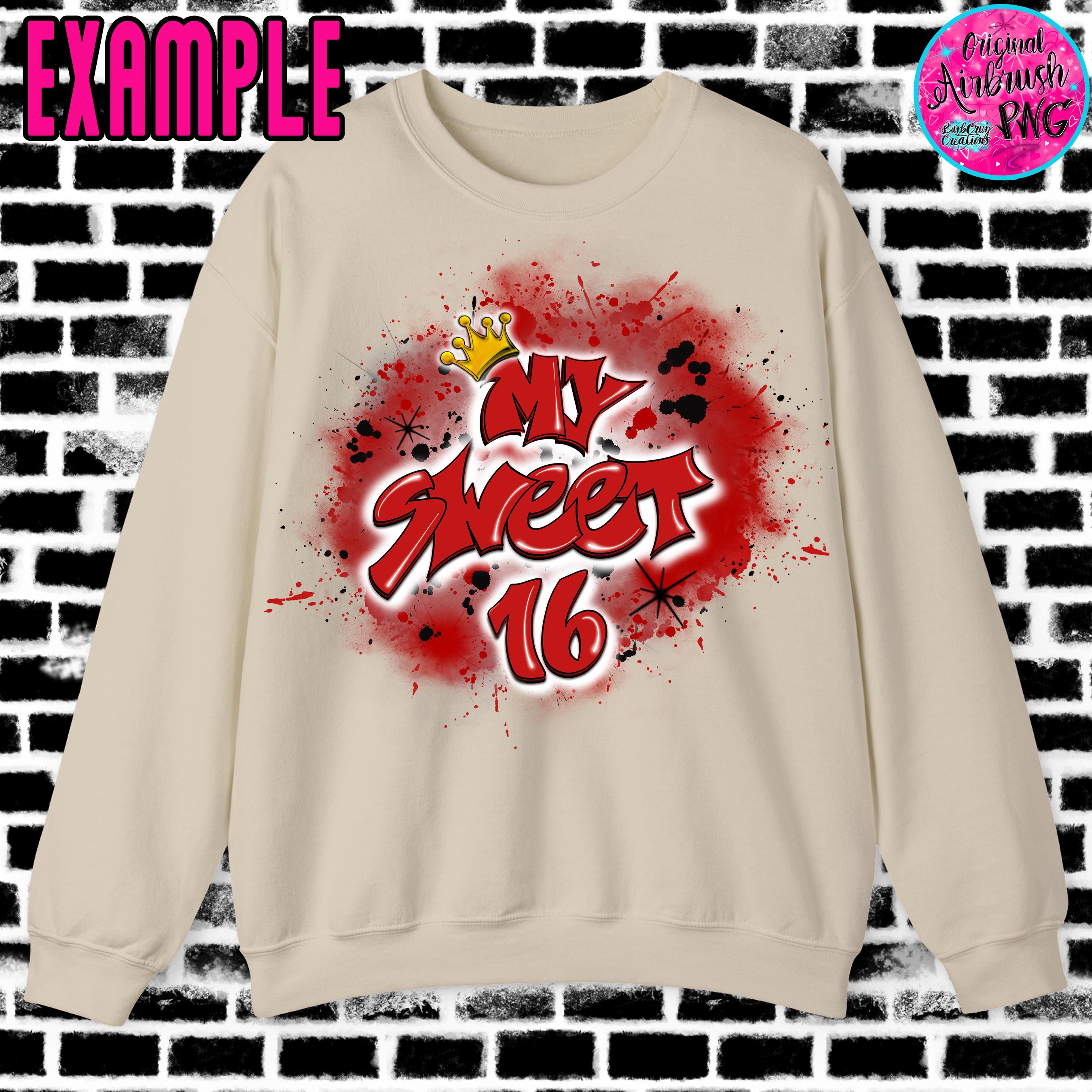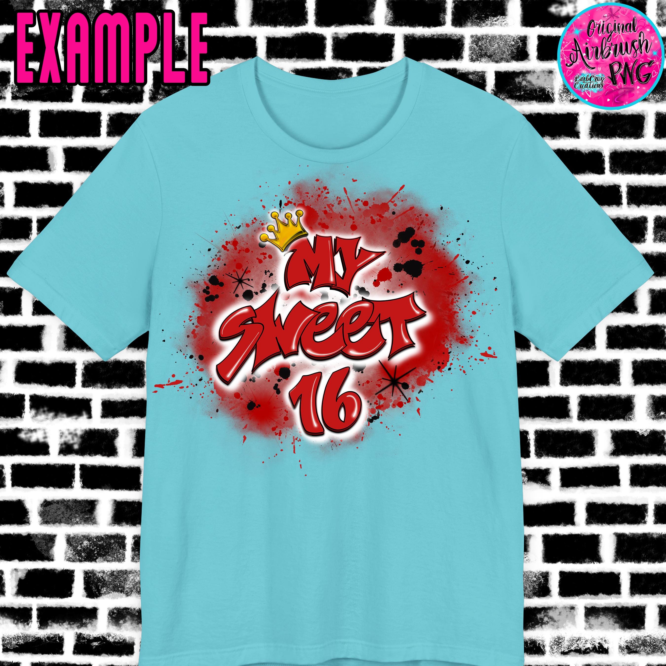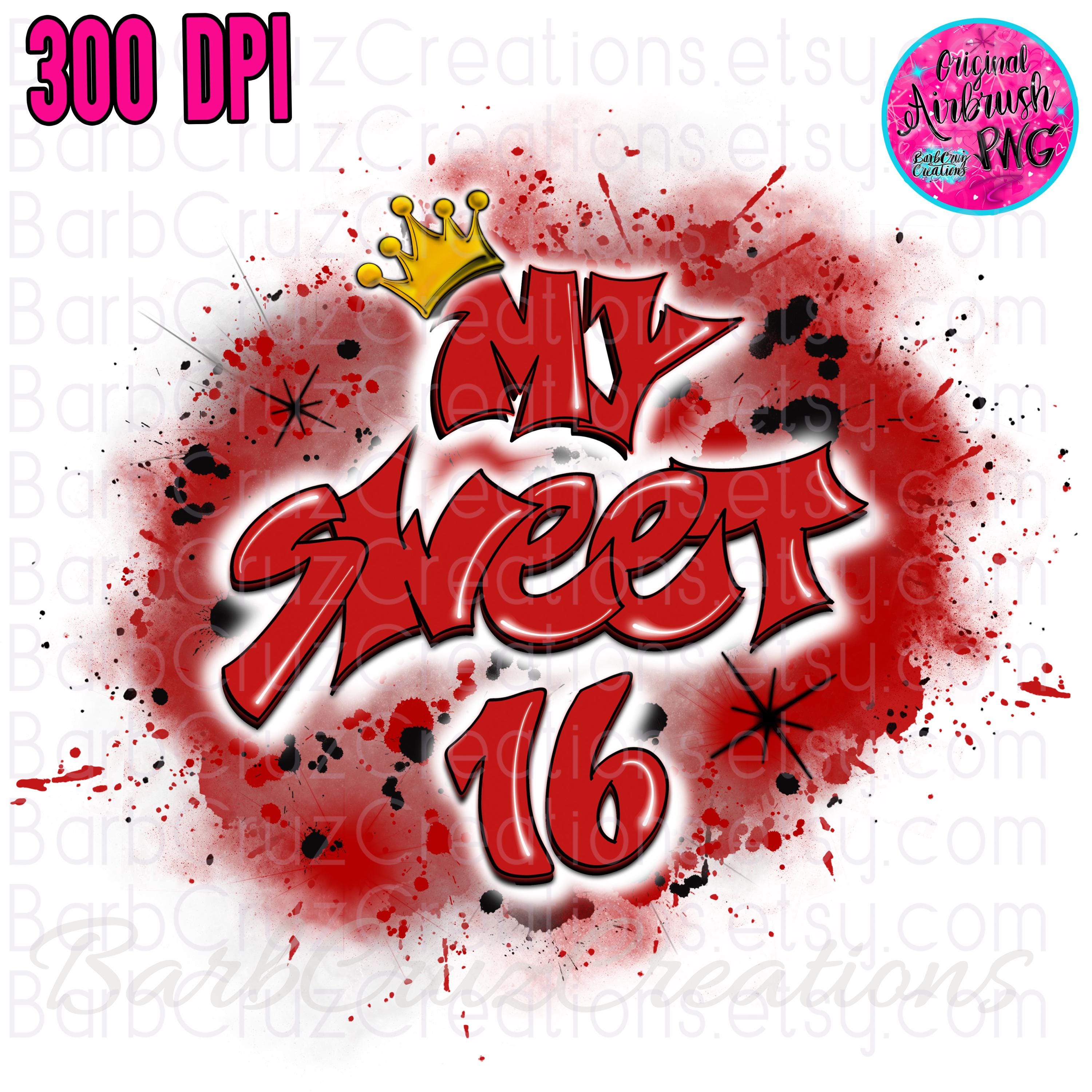 My Sweet 16 Birthday Crown Airbrush PNG (Digital Download) Red Hip Hop Sixteen bday, crown, Birthday Party, Sublimation, DTF, Graffiti Y2K
