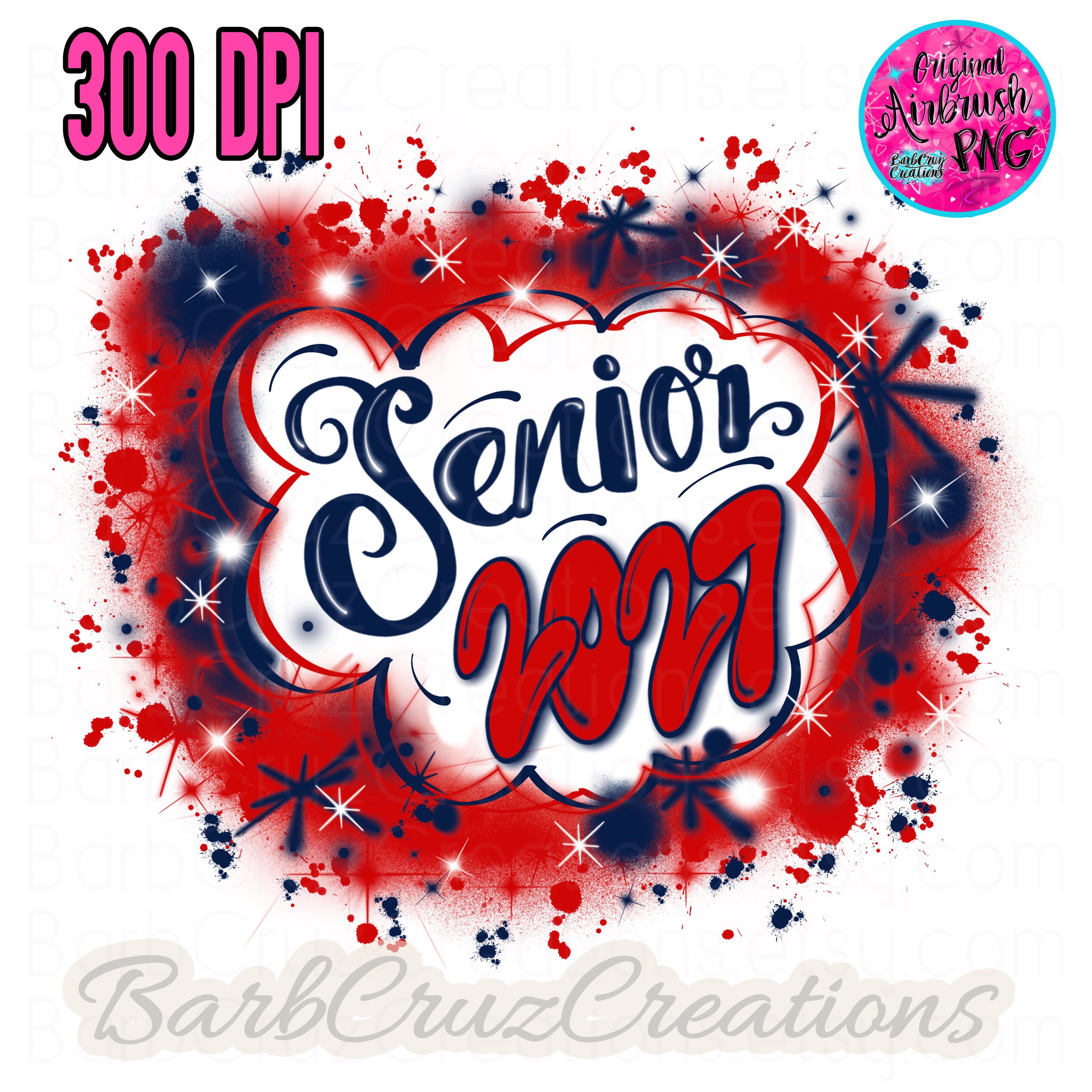 Senior 2027, High School, Class of, Graduate, Airbrush PNG, Sublimation Design, Digital Download, Graffiti, B2S, Y2K, Navy Blue, White & Red