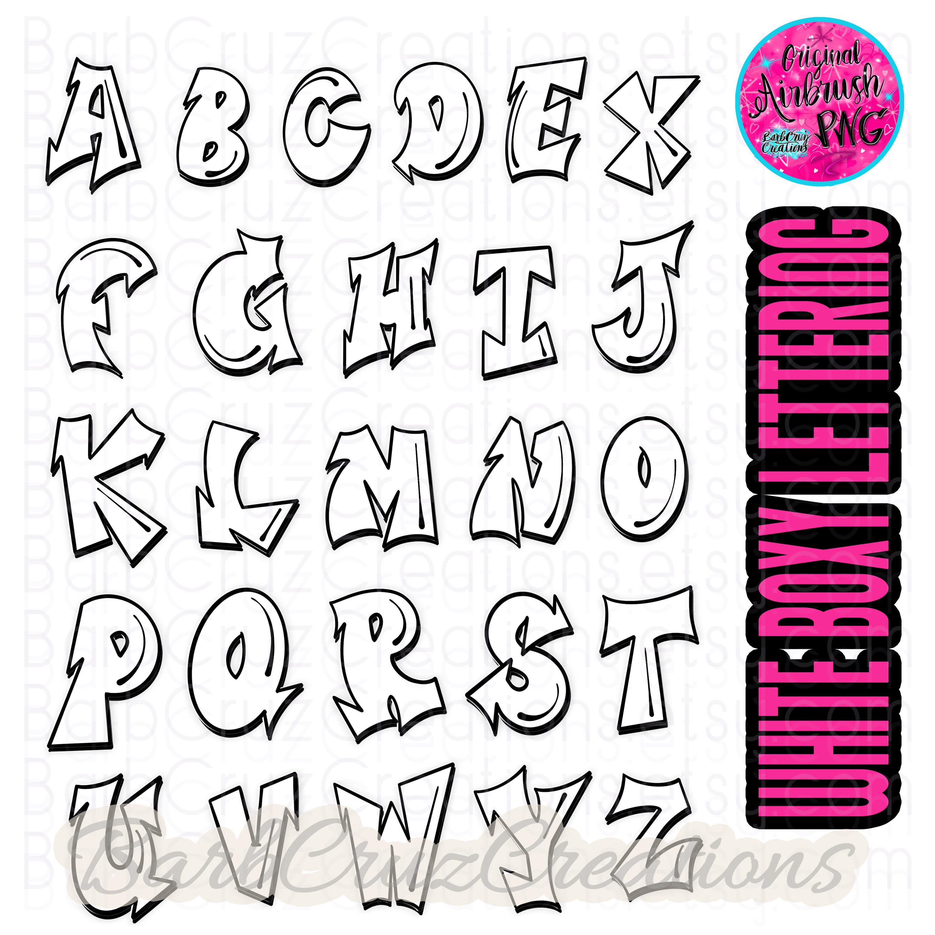 White Boxy Lettering, Graffiti Letters, Airbrush Alphabet, Airbrush Font Images, Sublimation Design, PNG, Fun Font, bundle, set of fonts