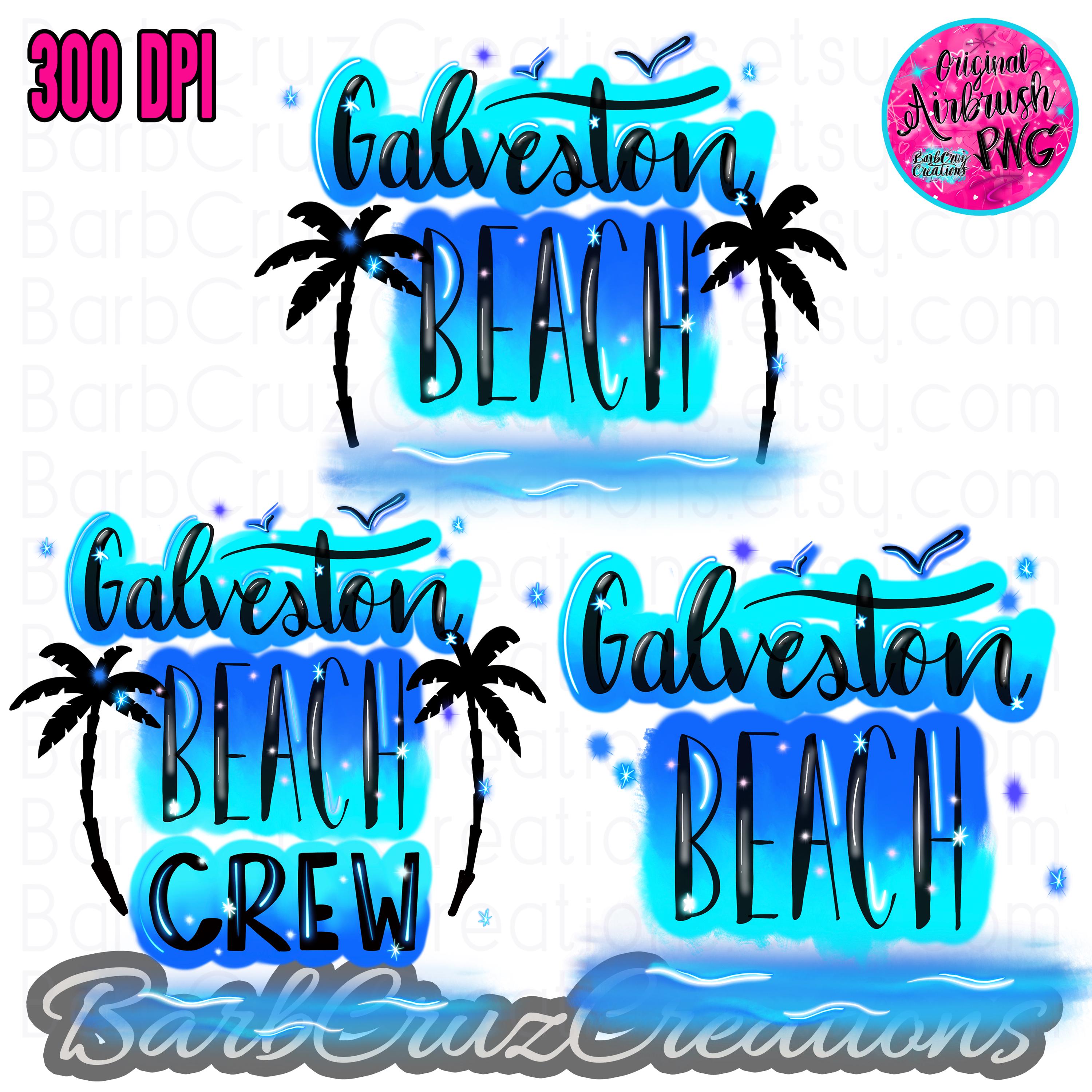 Galveston Beach, Airbrush PNG, Texas Gulf Coast (Digital Download) Galveston, Sublimation, Ocean, ClipArt, Texas, TX, Gulf Coast