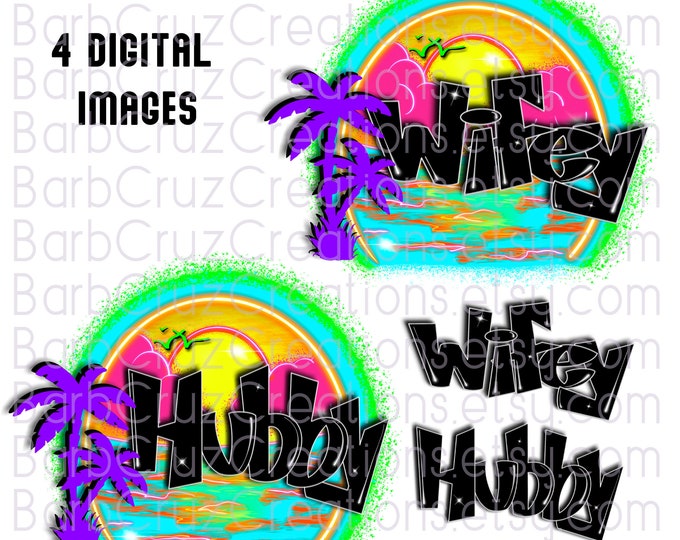 Airbrush png, Wifey, hubby, neon bright, Couples, Honeymoon shirts, anniversary, wedding, illustration, sublimation, digital, vintage 90’s